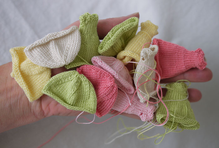 I took a picture of all of the hats together too. I have these small old wooden spools of silk thread and thimbles. They show just how tiny these hat are.