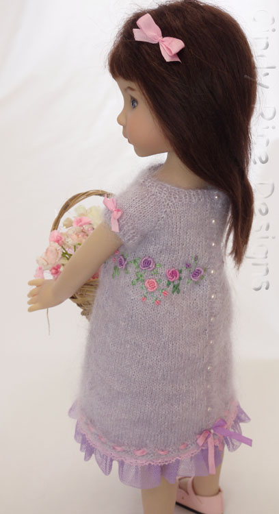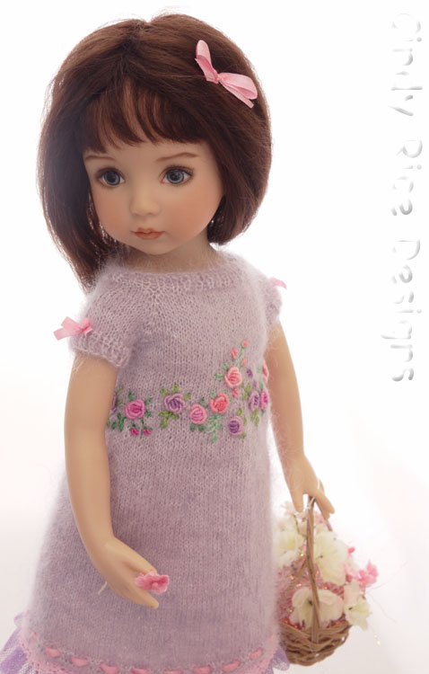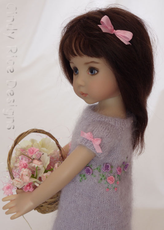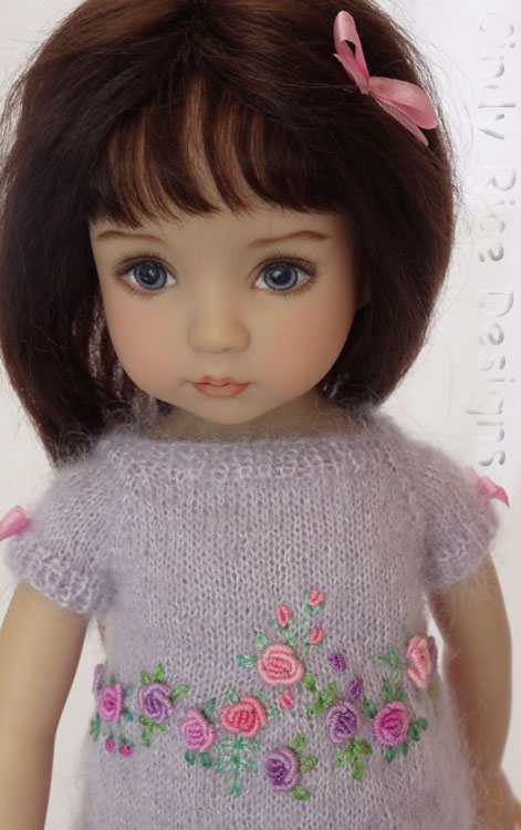 I have been wanting to knit and embroider a dress for one of my larger dolls for quite some time. My Little Darling, Gina, was the recipient of this very special dress. I made it just for her which has made her so happy!