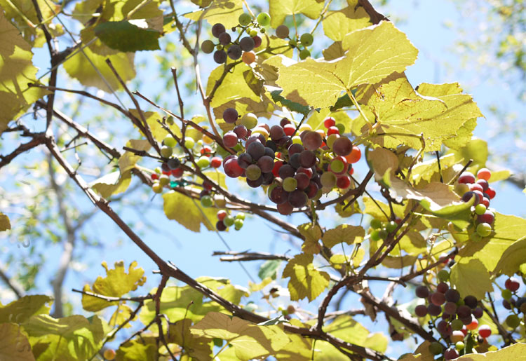 I looked up and took this picture of the grapes growing above out heads in the arbor, so pretty against the blue sky.  I wanted to pick a bunch and start munching on them, but didn’t…