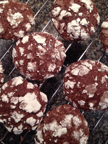 You would think that I have enough cookie recipes to choose from, but I felt like trying something new so this past week I made almond cookies garnished with maraschino cherries and chocolate crinkles. I found these two recipes online here and here. I wanted to use cocoa powder for the chocolate crinkles so I mixed 3/4 c. cocoa powder with the dry ingredients and added an extra 3T. of butter instead of the baking chocolate.