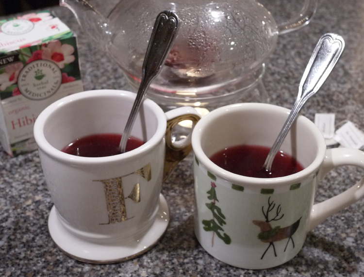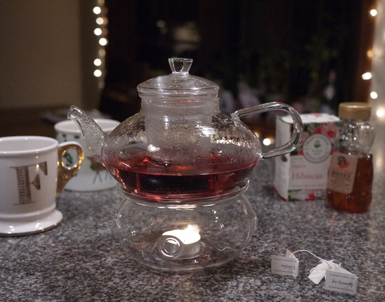 My daughter received the cutest little teapot and warmer for Christmas from her aunt, uncle, and cousins. It is so beautiful in it’s simplicity that it makes the tea drinking experience extra special. During the evening on New Year’s Day, we enjoyed a pot of Hibiscus tea together. We used the last two tea bags from the box so I will have to get more. It is very good iced as well as hot. Thanks to my sister-in-law, Heather, for introducing me to this new flavor of herbal tea.