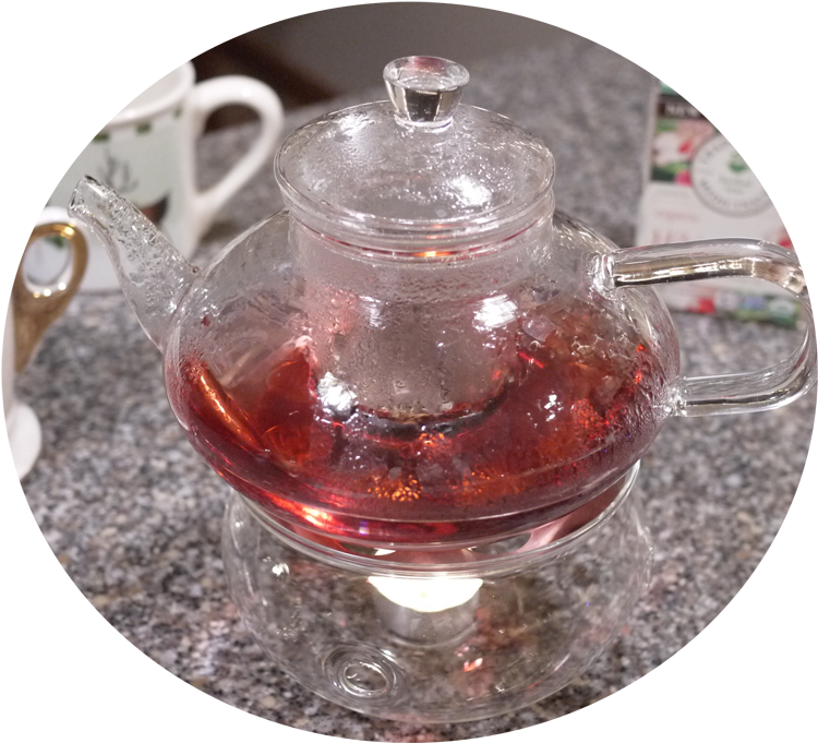 What a sweet little glass pot. I have to be honest and say that I’m not into the ‘flavoured’ teas, and am a boring basic hot tea with milk person, but I do love the ‘thought’ of the fancier ones 😉