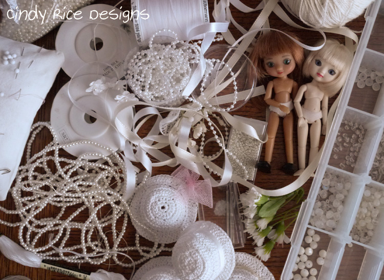 Last week I got this idea to knit up some Amelia dresses in different whites using different fibers. Then, I thought it would be fun to crochet up some springtime hats in white as a basic to go with lots of different colored dresses. Jeanne over at I Dream of Jeanne Marie posted about her white American Girl doll dresses on Friday (1-30-15). See, it’s all about white.