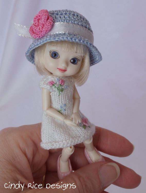 For more information on Amelia Thimble’s “Dreamin’ of Summer” dress/hat set please visit my “Available for Sale” page on cindyricedesigns.com .