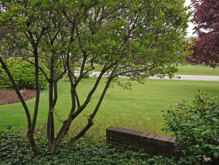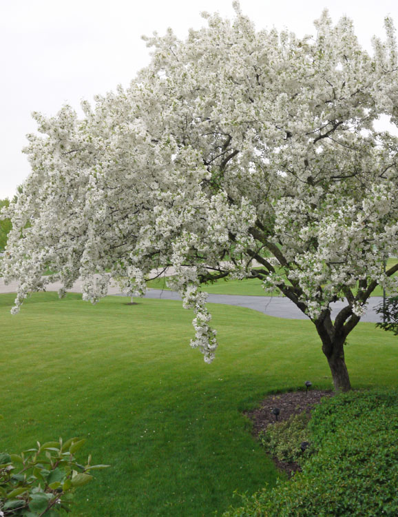 Our crab apple tree is in its glory right now. Isn’t it beautiful? Our magnolia that I showed you (here) now is all leaves and the tiny honeysuckle to the right of it only has a few blossoms left. We still have a set of lilac bushes yet to bloom and another bush that blooms with light pink flowers. I don’t know what it is. I will share a photo of it and maybe someone can help me identify it. 🙂