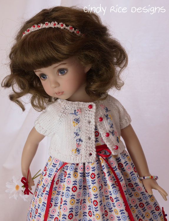 While this isn’t a sailor dress it is a red, white, and blue ensemble that my Little Darling, Gina, is modeling for you. I couldn’t pass this fabric up—red, white, and blue in my favorite theme, floral, no surprise there, right?