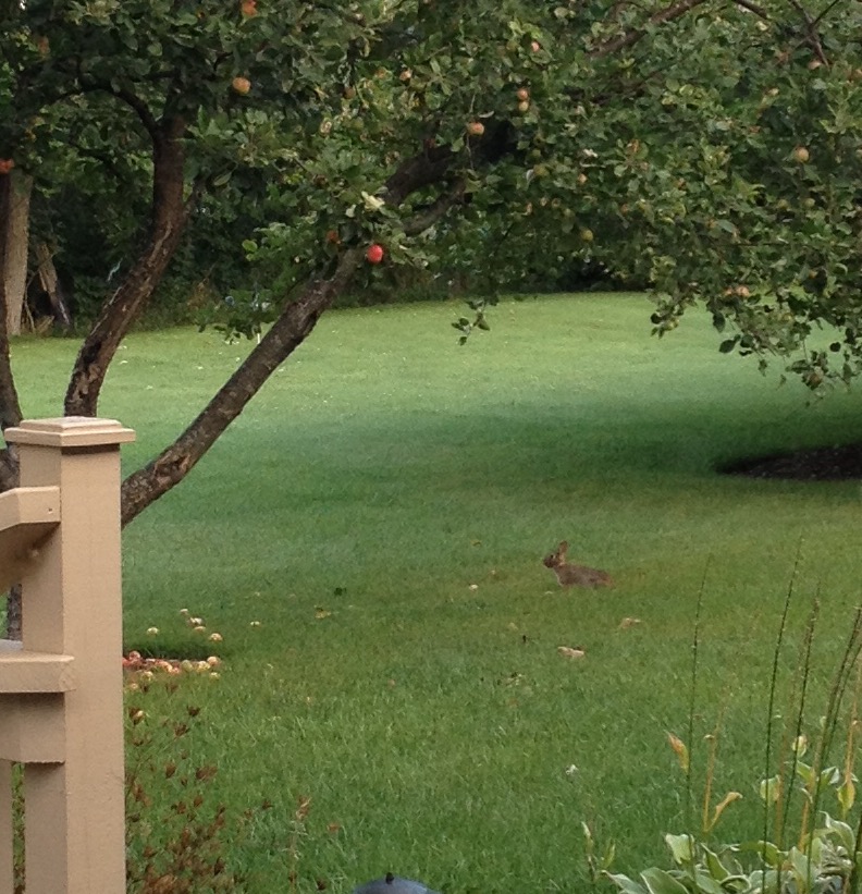 I have to share this one last photo with you. It was about 7:00 in the morning and this little bunny was enjoying an apple that had fallen from our apple tree. I had to take this photo from inside the house, so I didn’t scare it. It had already seen me however, and had stopped munching.