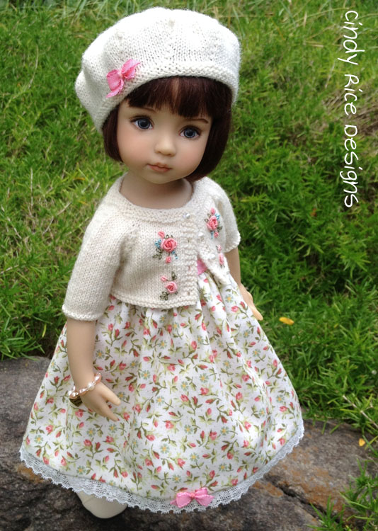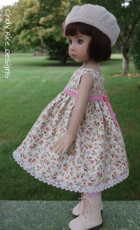 My latest ensemble for Gina can be worn anytime, I think. The color palette is slightly muted and it includes a beret which are fall-ish elements, but you can replace the beret with a hair ribbon and the boots with a pair of shoes and this ensemble could be worn in the spring, couldn’t it?