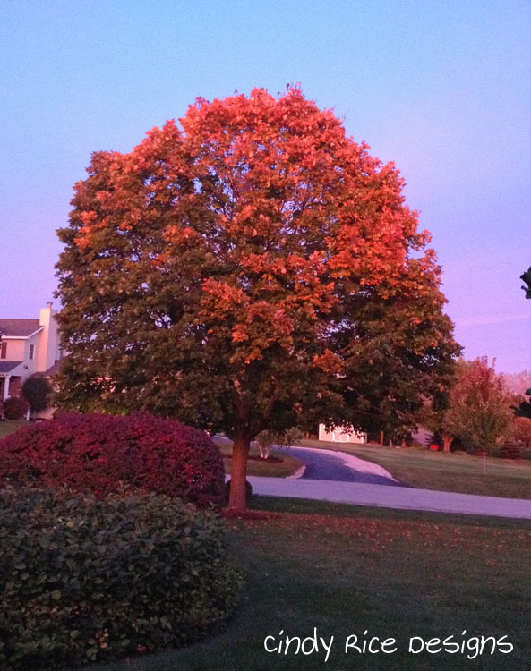 fall sunset 2087Our house faces the east, so as I stood on our front porch I saw the trees in our front yard lit up by the setting sun, so magical.