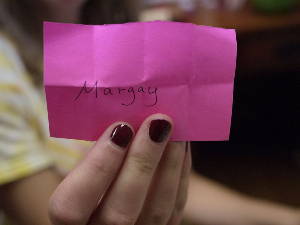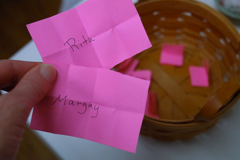 Now for the winners of the Craftsy classes. I wrote everyone’s name on a piece of paper and folded it 3 times, so we couldn’t possibly peek! (That’s no fun!) I put the names in a basket—my daughter mixed them up and pulled out two names.