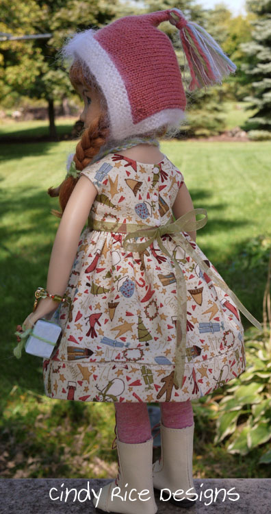 Very nice choice for starting the Christmas season off right! That is a beautiful print and it’s easy to see why it is your favorite. Gina looks adorable in it…all the way down to her sweet reddish braided wig! I love that style of hat on little girls too! Oh what a sweet sweet outfit Cindy! Well done and Merry Christmas!