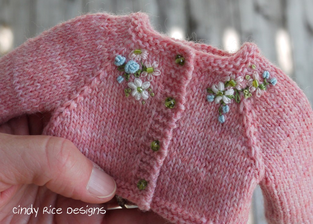 My second ensemble for Bella involved a little more time dedication since I knew it would be something that she’d like to wear. I made a few adjustments to the cardigan to make it fit better and took more time with the embroidery.