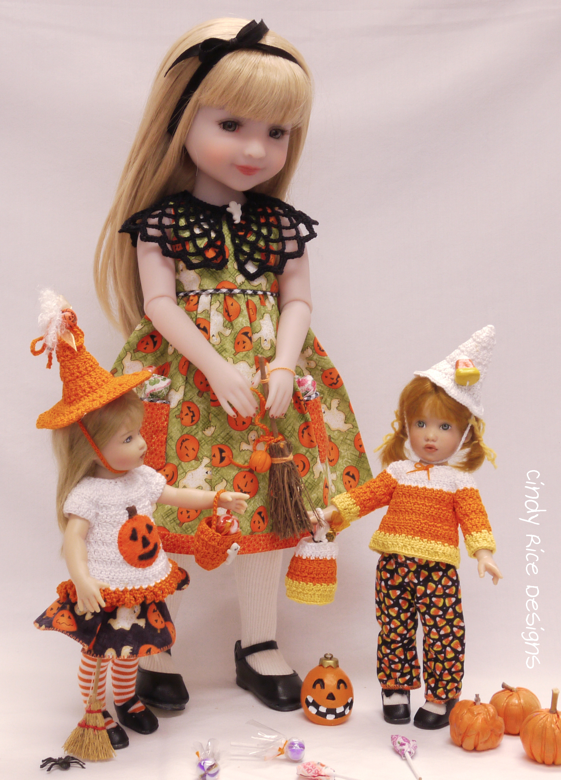 Riley and Tulah came out for Halloween too. The crochet ensembles they are wearing are probably about 15 years old! Time flies! Anyway, they are the Boo Crew this year.👻