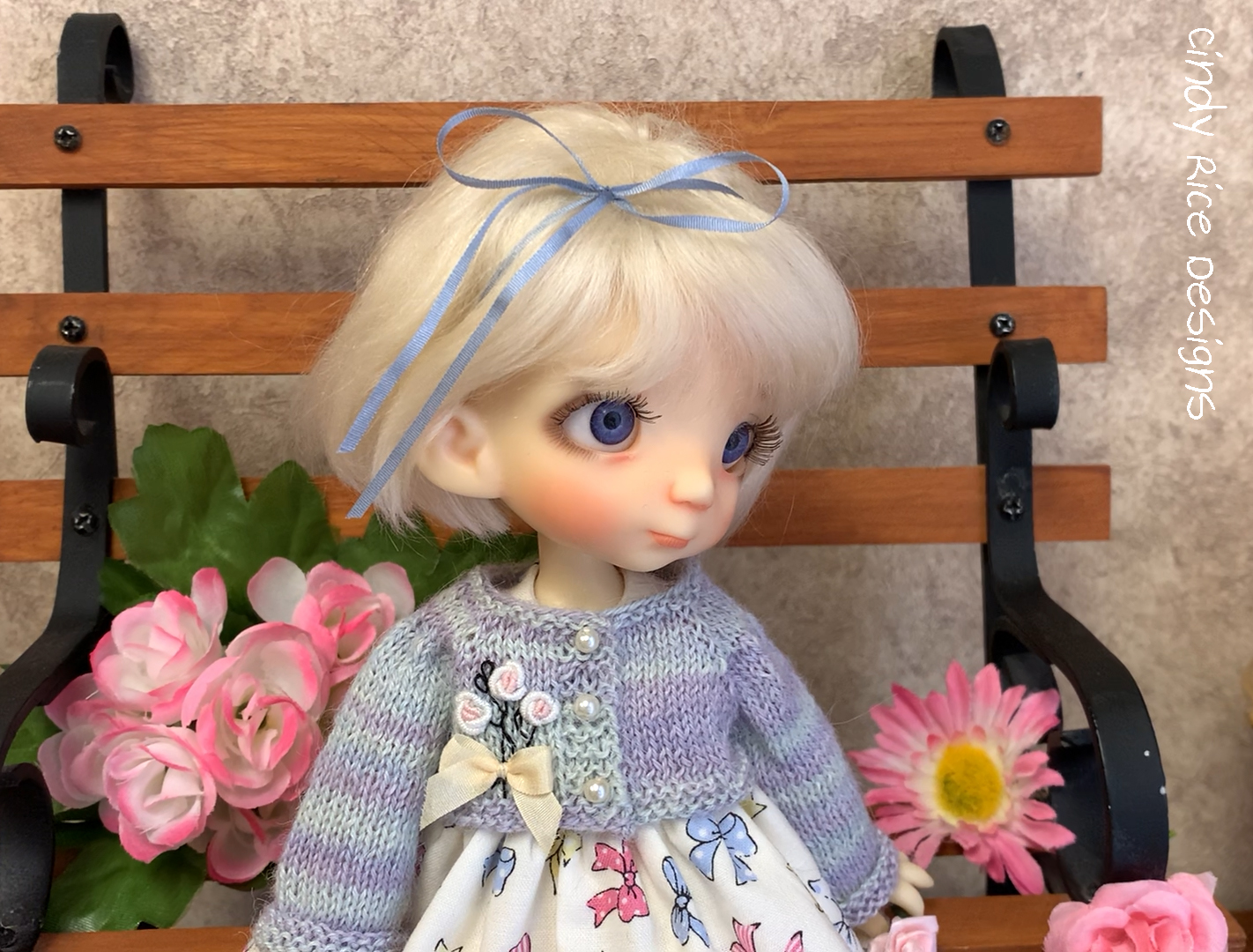 Penny’s new ensemble is complete and she is happily modeling it for you. Yes, it is done and I didn’t have to reknit the cardigan. Thank you for your support and suggestions for it.